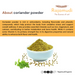 Rajamudi Organic Dhania/Coriander Powder comes in a resealable, eco-friendly pouch to maintain its freshness and potency. Store in a cool, dry place away from direct sunlight to preserve its quality and flavor.